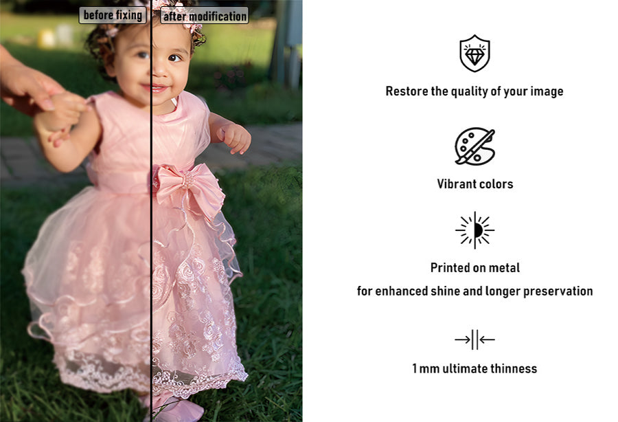 Your colorful and high-contrast images will explode with exceptional depth-of-color and our Latest printers equiped with fluorescent ink.Every photo is color corrected by a member of the MetalCraze team, to ensure the most vibrant color. We will properly cut the pictures you upload to meet the size that you choose!